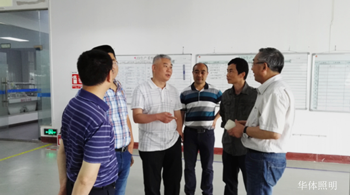 隨后,王處長一行參觀了華體廠區,并在LED研發部及智能控制演示廳進行了現場調研,充分肯定了公司LED模組與智能照明管理系統,龐文龍調研員對與公司產業相關的政策向華體人員進行了講解。當得知華體智慧路燈正在重慶渝洽會參展時,王處長希望智慧路燈可盡快在成都展出,促進我省智慧城市及信息化工作的發展。
